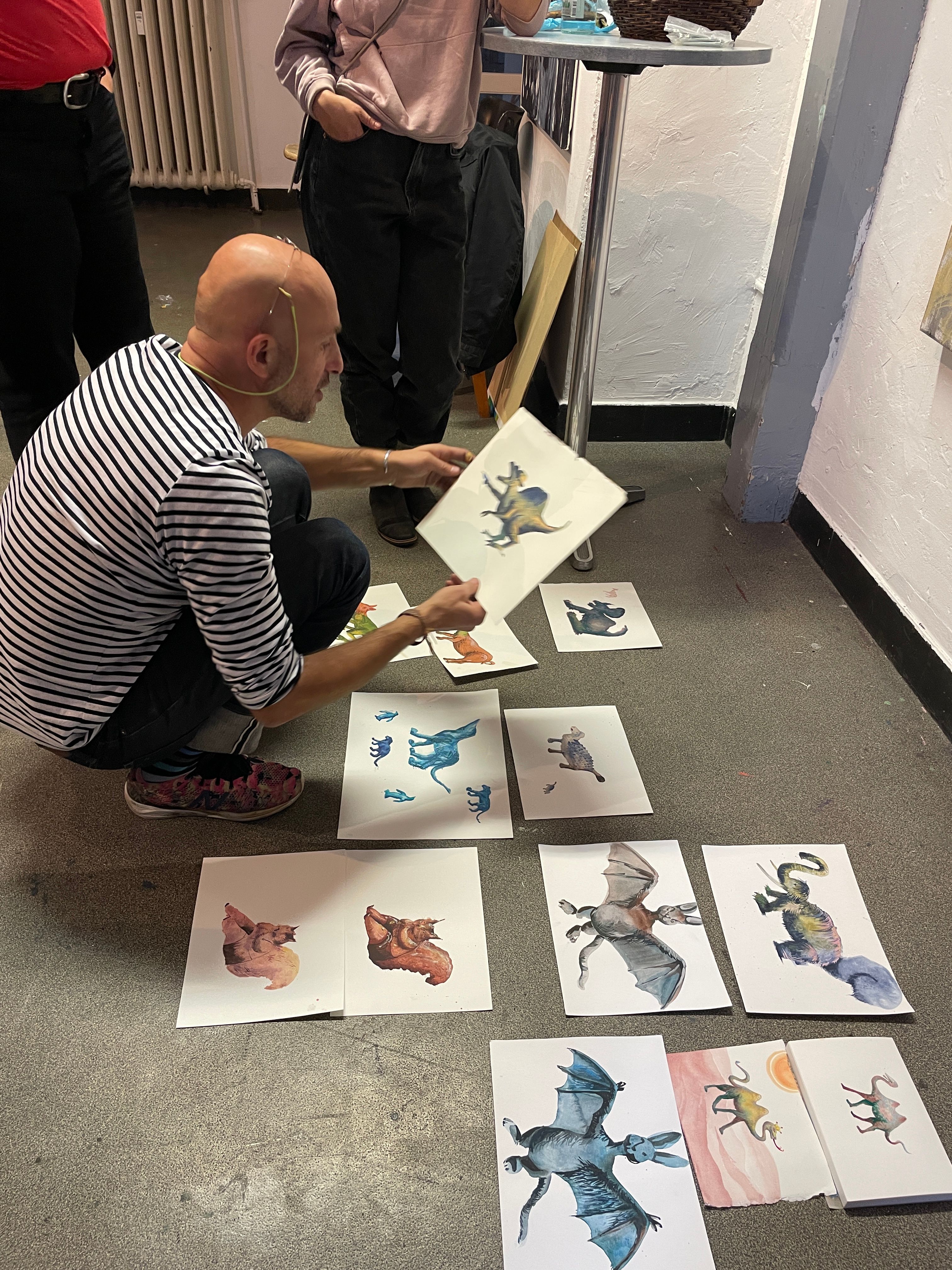 Bei jeder Aufgabe demonstriert Aljoscha Blau seine Vorgehensweise und Technik. Dann werden die Teilnehmer individuell und in gemeinsamen Besprechungen betreut. Das Ziel dieses Workshops ist es, Gouache - eine der wichtigsten Maltechniken zu erlernen, sowie eine eigene Handschrift beim Porträtieren zu etablieren.